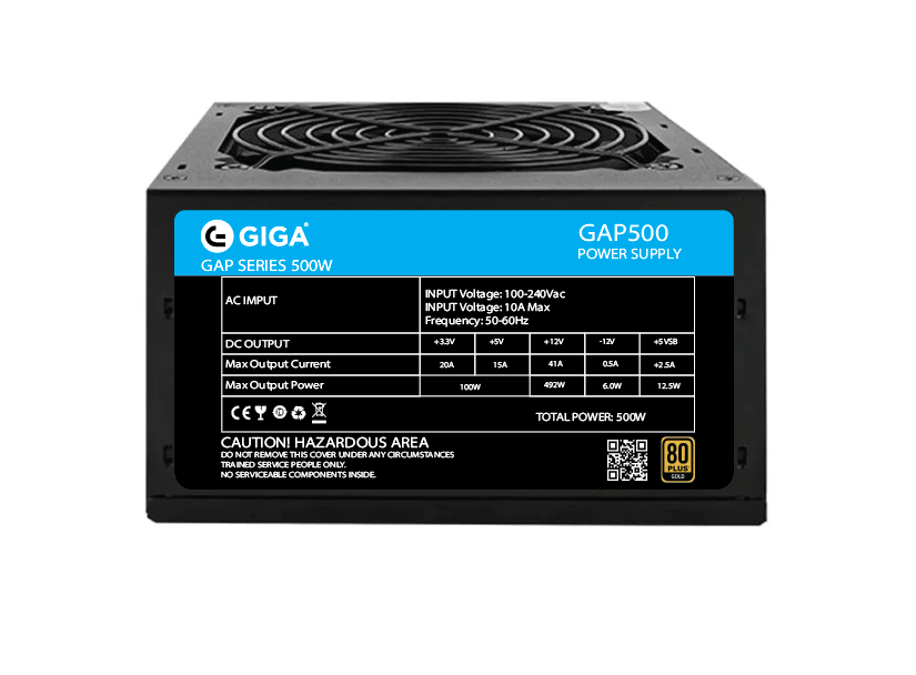 منبع تغذیه(پاور) کامپیوتر 500 وات گیگا مدل GIGA GAP500 80 Plus GOLD POWER