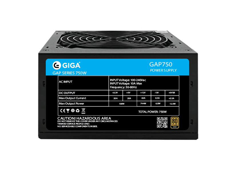 منبع تغذیه(پاور) کامپیوتر 750 وات گیگا مدل GIGA GAP750 80 Plus GOLD POWER